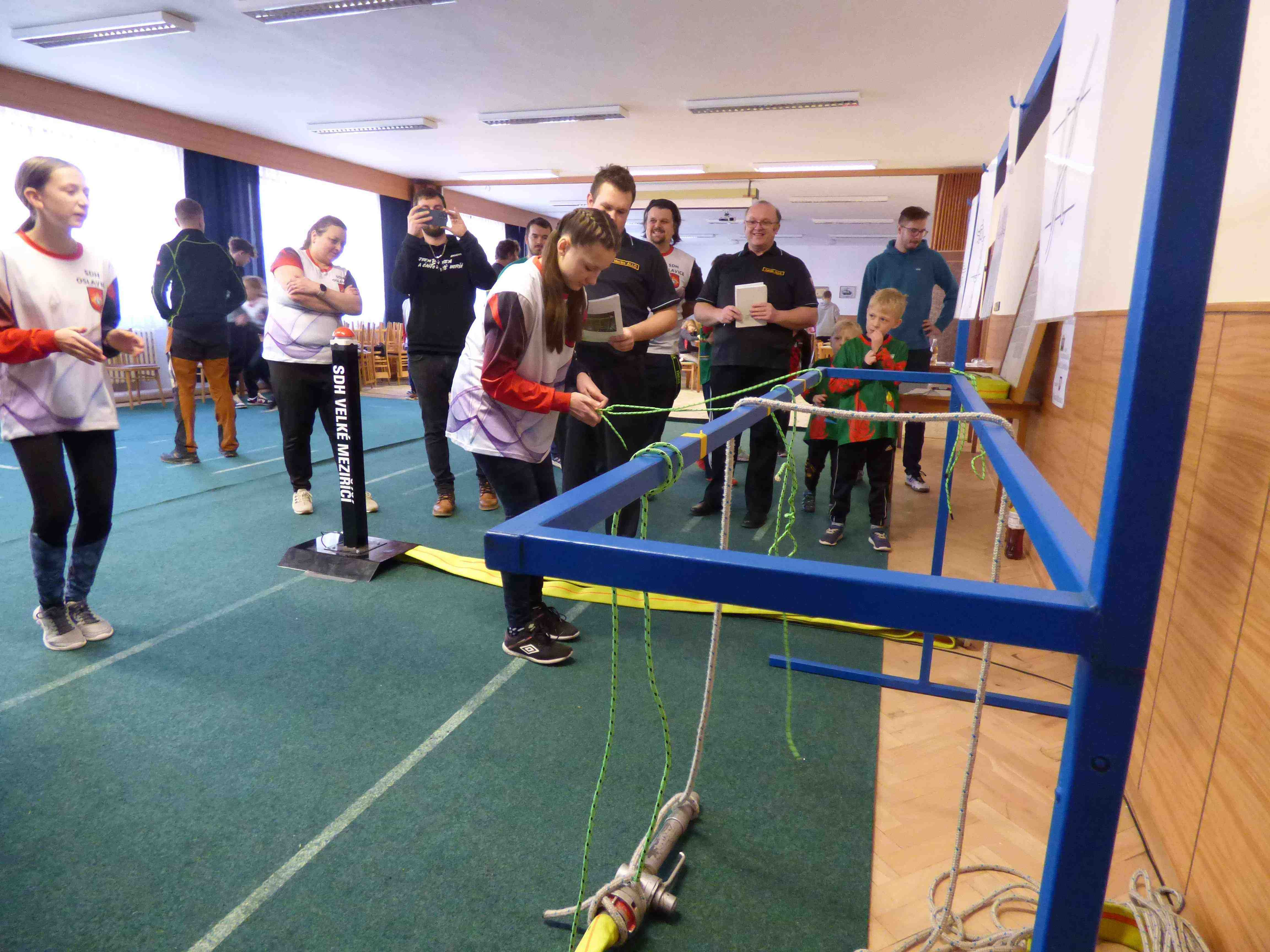 V sobotu dne 20.1.2024 se na sále hasičské zbrojnice ve Velkém Meziříčí uskutečnil druhý ročník soutěže pro Mladé hasiče, tzv. „UZLOVÁ ŠTAFETA“. Mladí hasiči se v průběhu roku učí vázat uzly používané v hasičině. Tyto uzly jsou i součástí disciplíny Požární útok CTIF v celostátní soutěži hry Plamen. Naše soutěž tak může být brána jako generálka právě na jarní kolo hry Plamen, kde tyto disciplíny proběhnou. Jako doplňkovou a zároveň do posledního okamžiku tajnou soutěž jsme zařadili rozpoznávání a přiřazení hasičských technických prostředků na stojan. Nikdo ze zůčastněných do příchodu na soutěž netušil co je bude kromě uzlů čekat. Opět se jedná o součást disciplíny Požární útok CTIF, a i tato část dětem přinesla možnost zdokonalit se před jarním soutěžením. Účast však byla poznamenána vysokou nemocností dětí, a proto mnoho pozvaných Sborů nemohlo na soutěž dorazit. Nakonec se soutěže zůčastnily domácí – velkomeziříčské týmy, týmy z Jabloňova, Oslavice, Otína a z Jam. V kategorii Mladších žáků si pomyslné zlato odvezli domů Jámy, a ve Starších žácích tým z Otína.